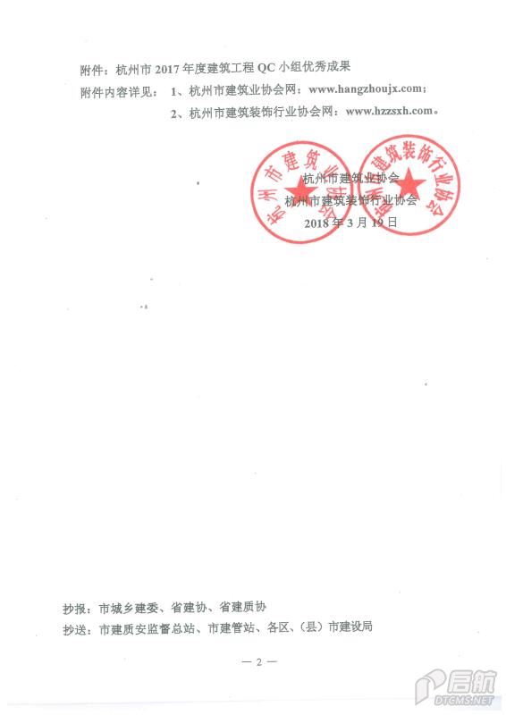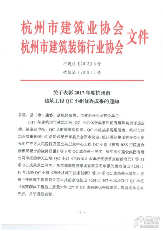 2017年度杭州市建筑工程QC小組優(yōu)秀成果二等獎(jiǎng)
