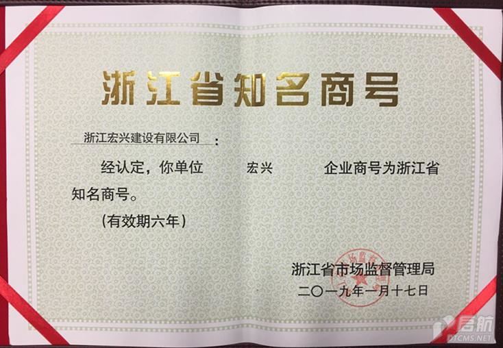 近日,公司收到了來自浙江省市場監(jiān)督管理局頒發(fā)的,“浙江省知名商號(hào)”證書。公司“宏興”商號(hào)喜獲2018年度“浙江省知名商號(hào)”。