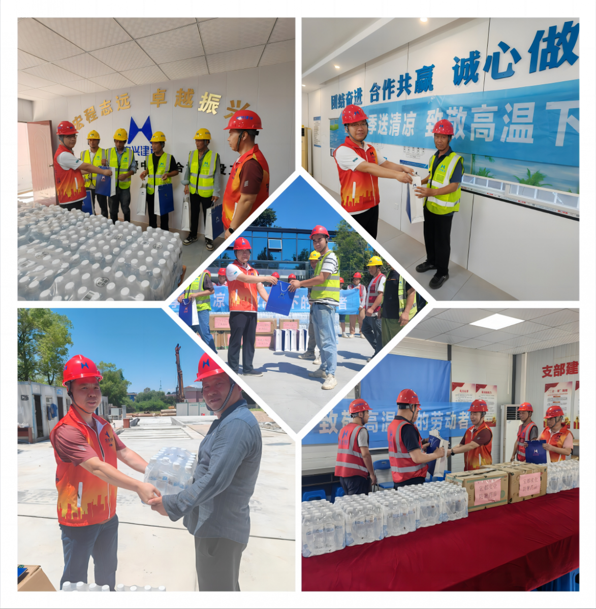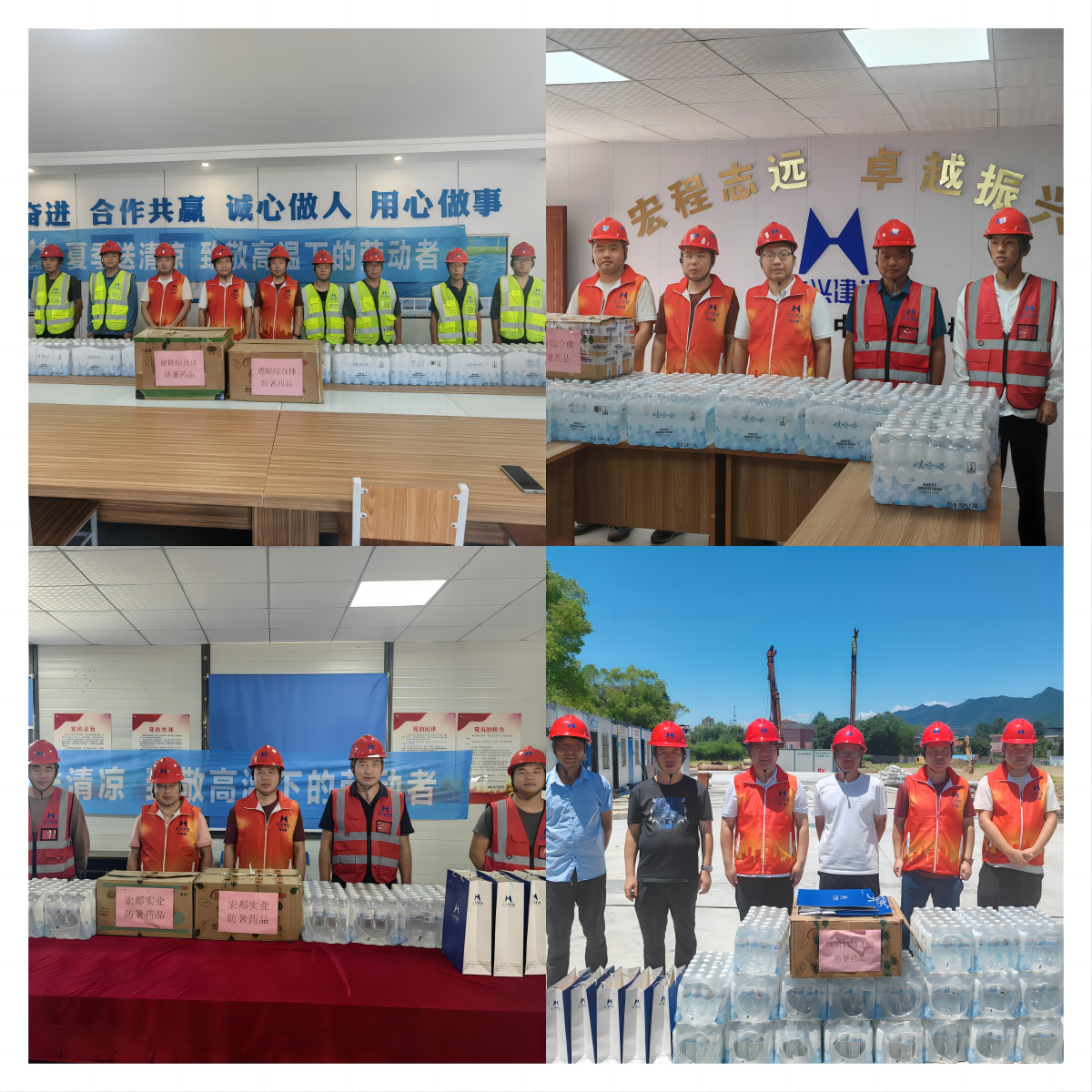 本次慰問活動走訪了喬林安置房、德聯(lián)綜合體、富春高級中學綜合樓、江南鎮(zhèn)幼兒園、宏都總部等縣內(nèi)在建項目,為對于距離公司總部較遠的項目,這份“清涼”均以快遞物流的形式傳送到每一個項目部。